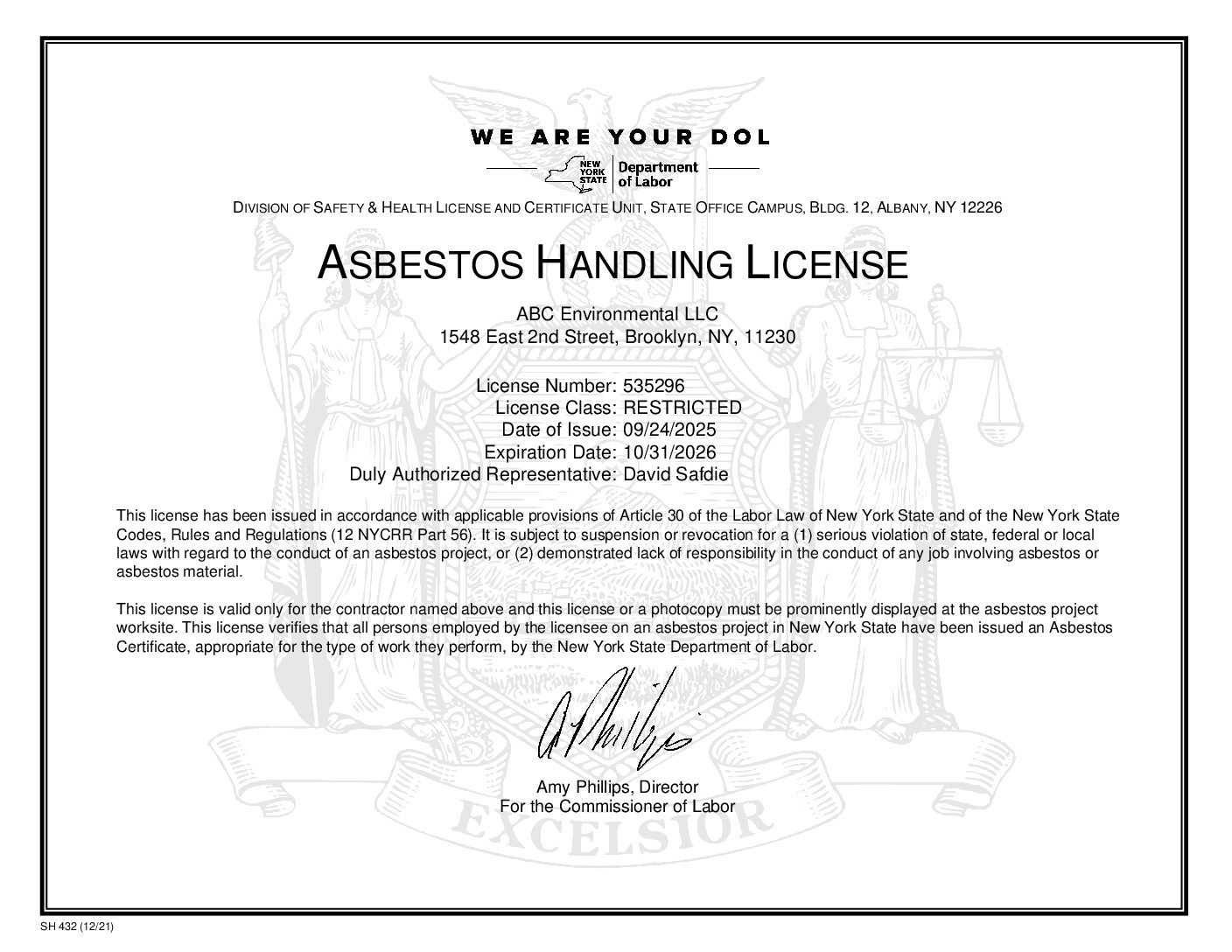 ABC Environmental LLC provides professional asbestos testing and remediation services to protect people, properties, and projects from hidden health risks. Our certified experts identify asbestos-containing materials through precise testing, then safely remove or manage them in full compliance with federal, state, and local regulations. From residential homes to commercial buildings, we ensure every space is made safer, cleaner, and fully compliant—without guesswork or shortcuts.